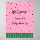 Welcome guests to a baby shower with this fun poster, featuring watermelon seeds and a pink background. Add the guest of honor's name, shower date and custom welcome text using the fields provided.