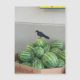 This is a picture I took of a wild bird on some watermelons at a grocery store.