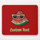 Cute cartoon. Watermelon slice with sunglasses. Custom background color. Custom text.