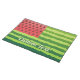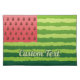 Red and green watermelon flag with stripes and seeds. Custom text.
