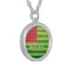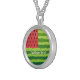 I chose gold plated so that the metal would not react with my skin oils and perspiration. But, I changed the necklace from the gold plated one to a sterling silver. My skin cells will tarnish the silver. But it will not look as bad if some portion of the gold plated necklace somehow became compromised. Zazzle did a find job turning the picture into a pendant for me. As you can see, the colors and the printing of the final product, match the preview. The picture I took is not very clear. But I am pleased with the product I received.