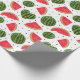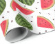 Fun watermelon pattern wrapping paper featuring watermelon slices and in shapes of a heart.