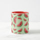 Destei's red and green color watermelon fruit slice pattern on a light green background color.