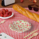 Mid-century inspired design with a retro touch featuring stylised pieces of watermelon on a pale green background. A customizable design for you to personalise with your own text, images and ideas. An original digital art image created by QuirkyChic.