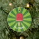 Watermelon ice cream stick icon on green grunge background with custom text.
