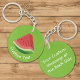 Ripe red watermelon slice icon. Custom background color. Custom text on both sides.