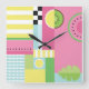 Watermelon, kiwi, summer fun colorful pattern square wall clock