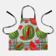 Great color and even though I ordered the kid size, it covers well enough to use during the holidays. I am not a big woman and prefer a shorter apron. I stand 5"6" and the length of the garment goes to mid-thigh. The tie straps fit well at my waist and even though there is no neck strap adjustment, the opening is plenty big enough. I am happy with the size and fit. I am sharing my apron with my 10 year old grandson, too! The color is vibrant and looks good, as shown on the website. The stitching looks strong and reinforced. Photographed is front side and back side of the apron, reinforced straps and coloring. My phone camera may not be the best at showing the details.