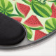 Ripe red watermelon slices. Seamless pattern. Custom background color. Custom text.