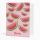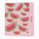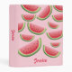 This binder features Destei's cartoon illustrated watermelon slices on a pink background color. There are also personalizable text areas for the title on the front of the binder and on the spine.