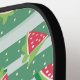 This pickleball paddle design features a watermelon related pattern with green and pink stripes emphasizing the joy and energy of summer season.
