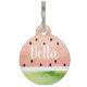 Ensure your pet stays safe with this personalized identification (ID) tag. This tag features a playful watermelon print in coral and green tones.
