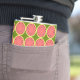 Design with a retro touch inspired by a watermelon featuring a pink circle and seed pattern on a dark green background. A customizable design for you to personalise with your own text, images and ideas. An original digital art image.