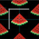 Watermelon slice pixel art icon. Seamless pattern. Custom background color.