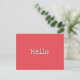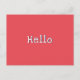 In an attractive watermelon red, this chic postcard is stylish and simple. The default wording on the front is a simple 'Hello', but you can personalize the card with your own words if you prefer. The reverse side of the card is blank for your own message.