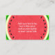 This pretty watermelon business card design has a fruit that looks like it's been sliced, so the juicy pink-red flesh of the melon shows, along with a circle of black watermelon seeds. The berry also has a speckled green, mottled rind.
