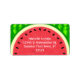 These pretty watermelon address labels have a round fruit that looks like it's been sliced, so the juicy pink-red flesh of the melon shows through, along with a row of black watermelon seeds. The berry also has a speckled green, mottled rind. This is a cute, whimsical summertime design.