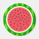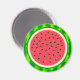 This pretty watermelon magnet design has a round fruit that looks like it's been sliced, so the juicy pink-red flesh of the melon shows, along with plenty of black watermelon seeds. The berry also has a speckled green, mottled rind. This is a cute, whimsical summertime design.