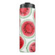 I painted watermelon slices in my sketchbook, then made a seamless pattern from them.