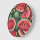 Tick-tock! Stay Cool with this Fun Summer inspired Watermelon Clock! Brighten up an empty Wall with a colorful Fruit Wall Clock. Create a Living Space you Love with this Fruit Clock. It's so juicy, colorful, and refreshing you can almost smell the Watermelon Scent! This Food Art Clock features Sliced Watermelons. Personalize this Wall Clock to your Hearts content.