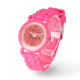 I only have one complaint. I ordered the watch with clear case and strap, and what was sent was white case and strap. I'm going to keep it because 1) it looks very nice in white, and 2) it would take too long to get a replacement made and sent in time for my occasion. Aside from the mix up with the color, the watch does look very good in white. The purple dial is actually sparkly which did not show in the online images. That was a nice surprise. If you like Swatch watches this is very similar to those. It's 33.6mm in diameter, 10.5mm thick, and 40.6mm lug to lug. Stainless steel case back says 3ATM/30m WR, so no swimming or showering or submerging this one. If you like Woodstock, this is a great choice.