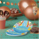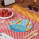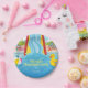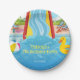 Make a big splash at a child's birthday party held at a water park, swim club, or splash pad with this paper plate. Water funnels down a bright yellow slide to crash into a bright blue pool filled with floaties and fun on a summer's day. Available with matching products.