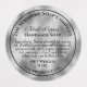 A waterproof label for bath and body care products featuring a woven silver foil background and black text.