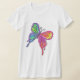 My overall review is that the T-shirt is nice, it fits true to size however the font is significantly smaller than advertised and you can't read it. The printing is unreadable and there is a strain to read it. It does not look like the advertised product. Maybe the shirt color is darker or a larger more visible font should have been used. Photos with and without flash and font is barely legible.