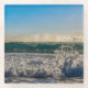 Dynamic photograph of a powerful wave crashing to shore with a giant wave in the background ready to do the same.
