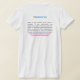 My overall review is that the T-shirt is nice, it fits true to size however the font is significantly smaller than advertised and you can't read it. The printing is unreadable and there is a strain to read it. It does not look like the advertised product. Maybe the shirt color is darker or a larger more visible font should have been used. Photos with and without flash and font is barely legible.