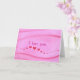Painting of a wave of pretty red hearts on a blended pink background, with, I love you, on the outside and repeated three times on the inside, printed on a greeting card. Can customize with your own message of love.