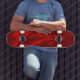 Shades of vibrant red create a bold and fiery look on this skateboard. A cool marbling effect created from a digital brush layering technique displays a wavy pattern that is modern and fun.