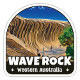 Arch-shaped Wave Rock, WA sticker featuring a striking digital art photo background of this iconic natural formation.