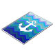 Simple plain white anchor silhouette on a beautiful water themed wavy background consisting of different shades and tints of blue.