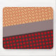 This mouse pad has a mid-century modern design of orange wavy lines on a gold background, red circles on a brown background, and a grey background. If you want the same design with different colors, message me.