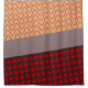 This shower curtain has a mid-century modern design of orange wavy lines on a gold background, red circles on a brown background, and a grey background. If you want the same design with different colors, message me.