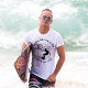 this design is for you, with a vintage retro classic simple minimalist illustration of a surfer on a palm beach and trees silhouette illustration and modern typography in black ink over a white t-shirt.