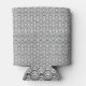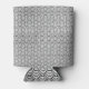 This can cooler has an Art Deco design of black curved lines in a triangle shape on a field of white repeated across the design.