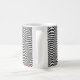An op art design in the genre of Victor Vasarely and Riley. It embodies an optical illusion. Move your head and it will appear to shimmer and move. This motion stirs the coffee!