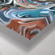 An acrylic pour abstract painting hand-painted in blue with hints of pink as a complementary color and highlighted in white. Vibrant swirls of blue, brown, and beige merge in a fluid, wave-like pattern. The composition evokes a sense of movement and dynamism.