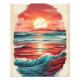 Capture the serenity of a tropical sunset with this mesmerizing watercolor painting. Gentle waves lap at the sandy shore as the fiery sun dips below the horizon, casting a warm glow on the tranquil seascape. This artwork is perfect for adding a touch of coastal charm to your home or office.