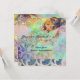 Elegant ,vibrant and artistic floral design in sparkling oriental swirls ,blue,pink,yellow,green,purple colors and gold sparkles .Watercolor painting with golden and silver foil.