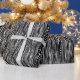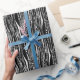 A retro black and white pattern reminiscent of old book end paper makes an elegant wrapping paper suitable for any occasion.