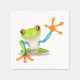 As its name suggests, the red-eyed tree frog has red eyes with vertically narrowed pupils. It has a vibrant green body with yellow and blue, vertically striped sides. Its webbed feet and toes are orange or red. The skin on the red-eyed tree frog's belly is soft and fragile, whereas the back is thicker and rougher. Red-eyed tree frogs have sticky pads on their toes.