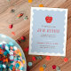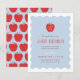 Created to coordinate with the "Wavy Apple" preschool graduation announcement collection, this modern, charming graduation invitation features a sweet, halftone apple illustration with a "Class of (Year)" message overlay. Beneath the illustration is the message "the apple of our eye", followed by the name of your child and their school, as well as the graduation party details. The text and design is placed over a solid blue background, with a playful, white wavy frame border. The back of the card features a coordinating halftone apple pattern.
