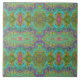 Wavy Aqua Blue and Orange Trippy Pattern Ceramic Tile