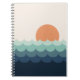 Abstract wavy blue ocean at sunset illustration with blue stormy waves and sun decoration for everybody who likes nature and simple elegant summery landscape designs.