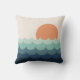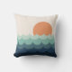Wavy blue ocean at sunset throw pillow