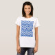 Features a beautiful pattern of blue and white waves. They are made up of curving lines, geometric forms that are entirely abstract but also inspired by the natural world. A clean and stylish design.