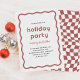 This Christmas holiday party invitation features a bold, wavy white border. “Holiday Party” is written in playful typography, with your name below in cute script. The back showcases a fun, retro wavy checkered pattern. Perfect for sharing holiday cheer at a party with friends and family, these invitations blends bold style and modern details to make your invite stand out. Available as a digital download too. Check out the collection for matching items, or browse our store for more unique Christmas holiday party invitation designs.